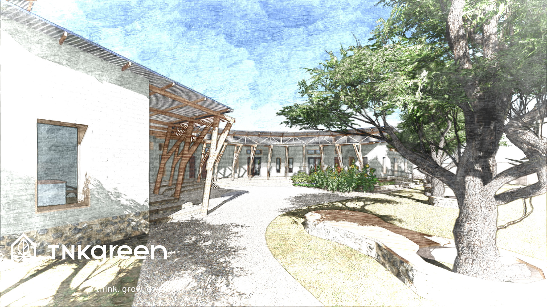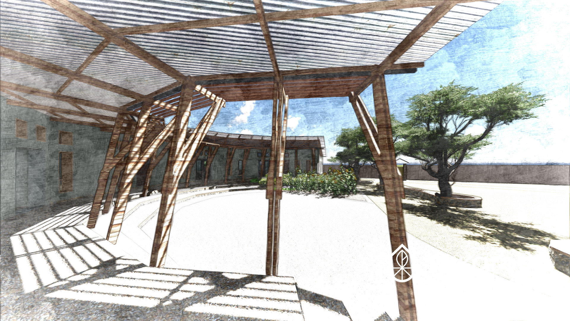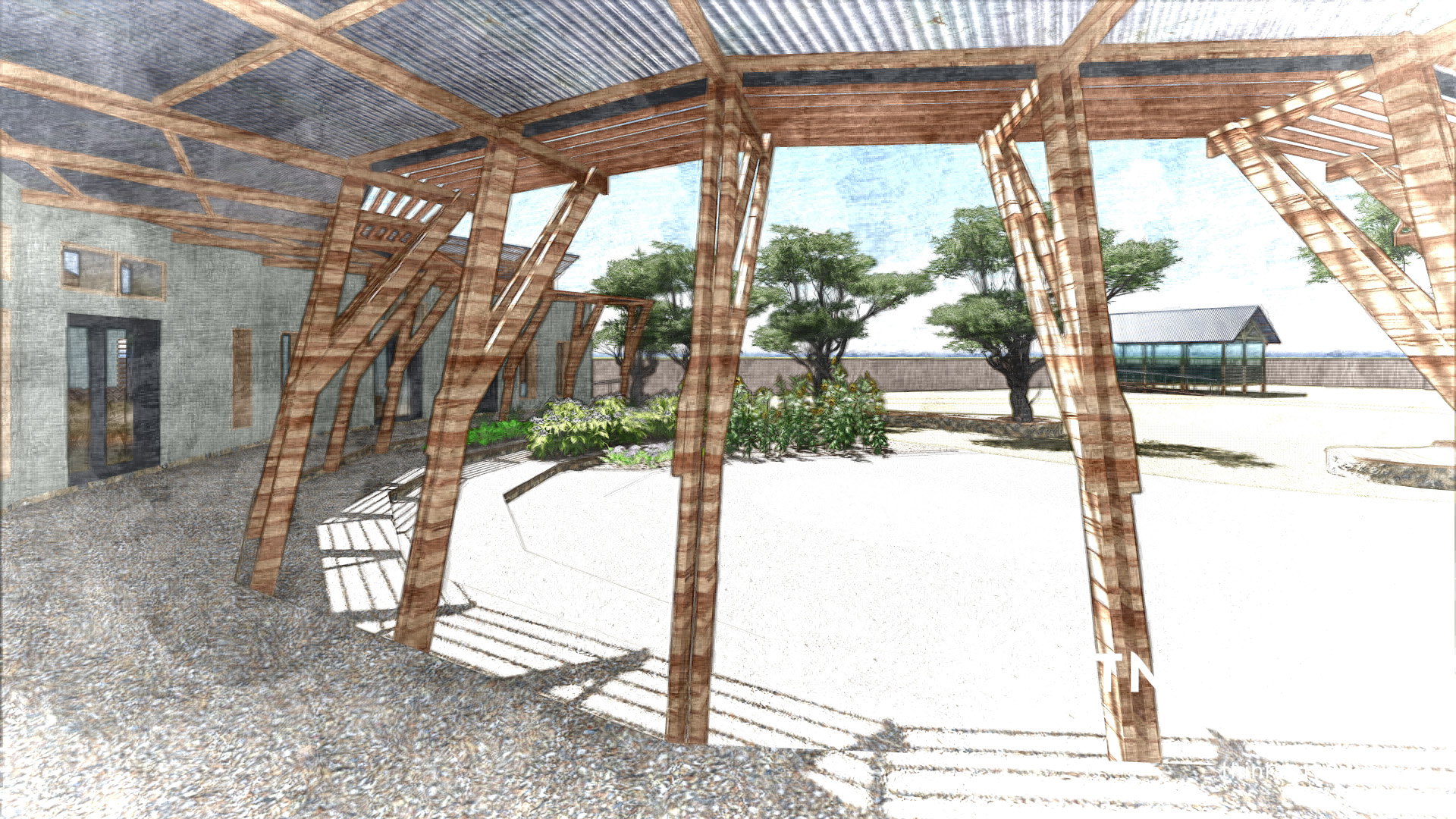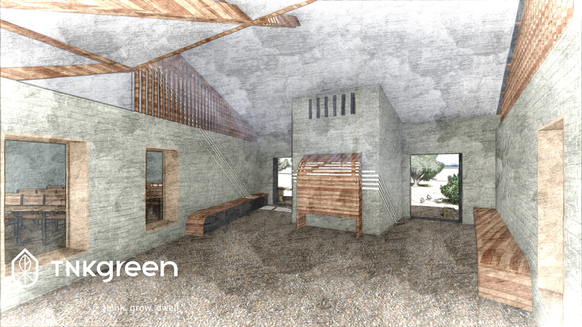 This rural school design built from compressed earth blocks, bamboo and corrugated roof sheeting, consisting of 8 identical interlocking splayed modules. It offers 504sqm of usable space, arranged in a half moon around a central courtyard that doubles as community gathering and performance space surrounded by a protected covered walkway, 4 classrooms, administrative office, a multipurpose hall and separate ablution block for 160 students. It also includes a covered play area, chicken coop and a food forest to make this school self-sufficient and provide long term sustainability.